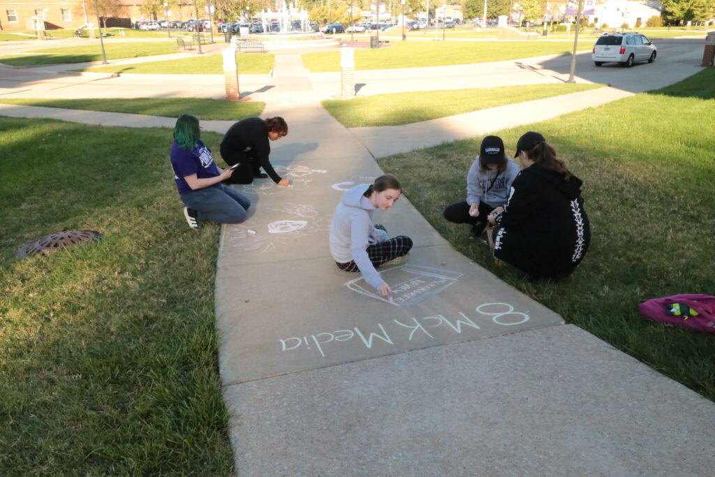 McK Media drew a variety of designs on the sidewalkGreen Team took the opportunity to spread their ambitions for campus The Theater Honors Society, Alpha Psi Omega, promoted their fall play “Ghost in the Machine” The amazing women from ELITE pose for a picture Delight Ministries spread the message of the Bible on McKendree’s Sidewalks (photo provided by Delight)