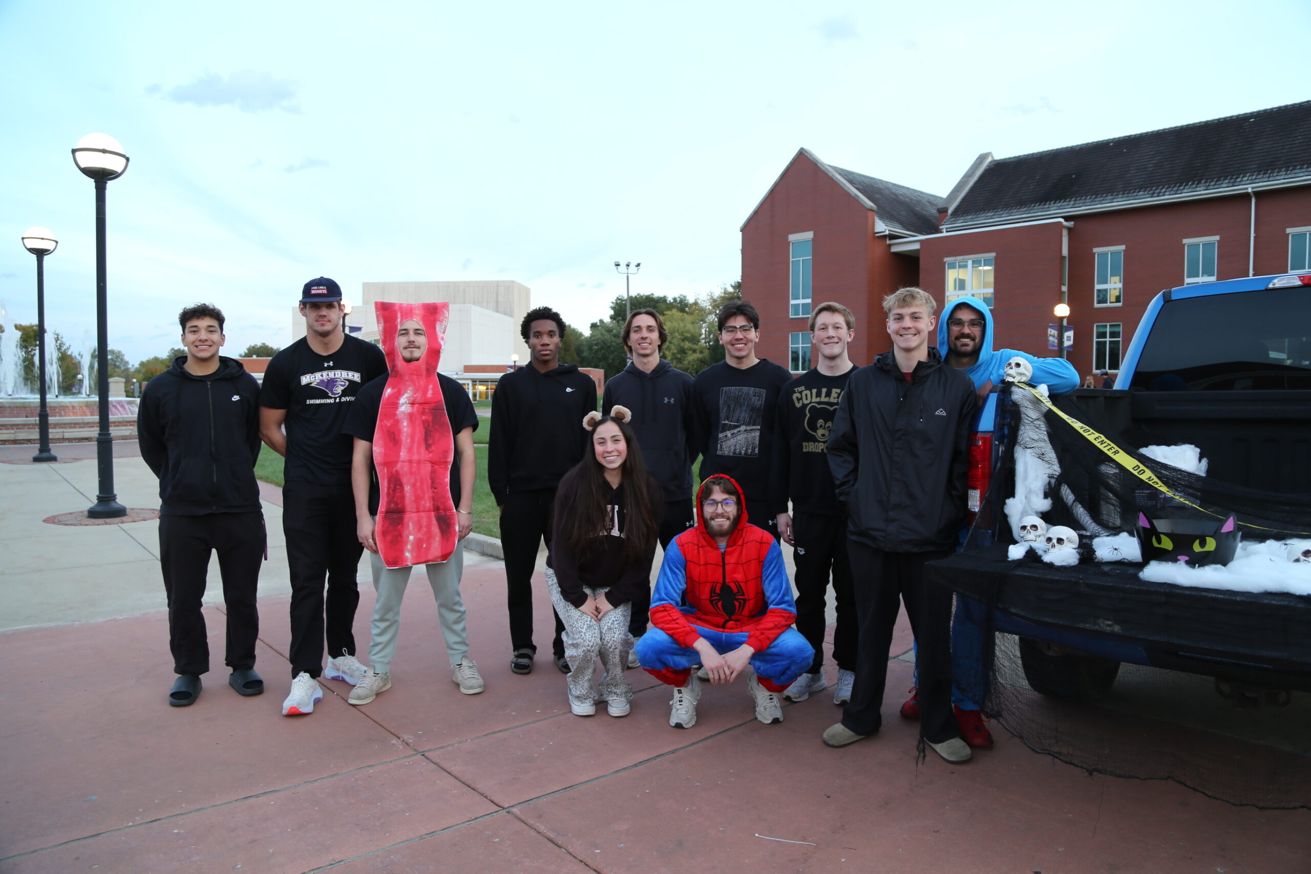 The event consisted of four spooktacular sections: cars, tables, games, and tours. SGA partnered with SAAC, McKendree’s Student-Athlete Advisory Committee, to host vehicles for athletic teams in the circle drive. RSOs lined up along the sidewalk with booths full of candy to pass out to students and children alike. CAB provided games such as KanJam, volleyball, cornhole and spikeball during the event. Student Ambassadors also led adventurous trick-or-treaters on Haunted Tours!