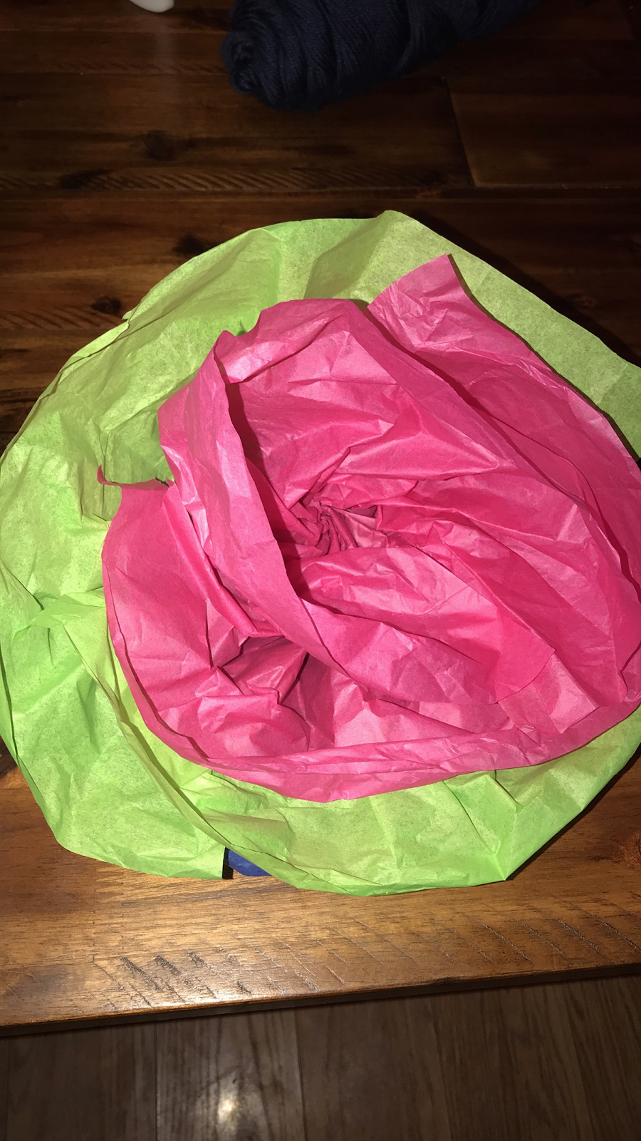 Following the blindingly bright tissues paper flower, we transition to our second and final craft of the night: a God’s eye. After adhering the two popsicle sticks in a perpendicular intersection, we then began to assist the residents in intricately looping the yarn around each pale birch protrusion. Loop and coil, loop and coil, loop and coil, we must have executed the action a thousand times. Born from the mundane popsicle stick and yarn is a beautiful, intricately woven motif completed by an enthusiastic resident.